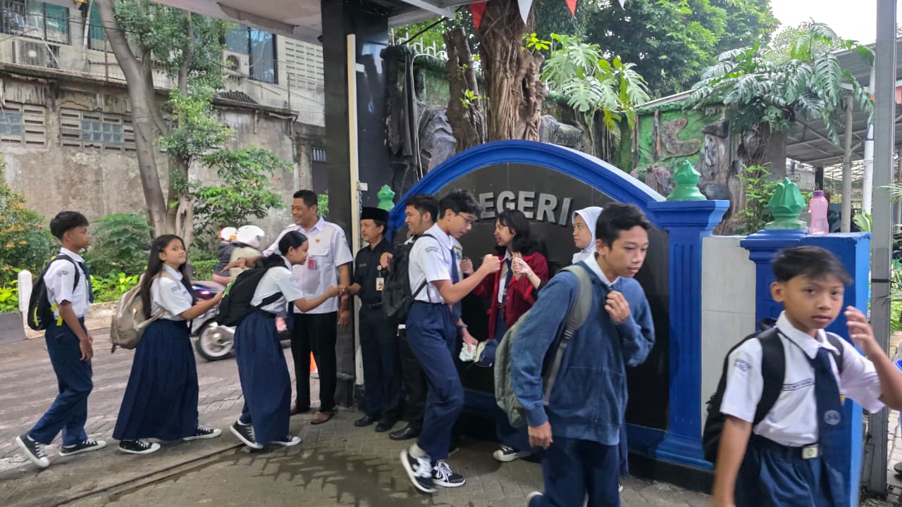 Jakarta - Mengawali kegiatan pembelajaran pada semester genap setelah libur semester ganjil, sekolah melaksanakan rangkaian kegiatan penyambutan peserta didik yang diawali sejak pagi hari di gerbang sekolah. Kegiatan ini dilakukan sebagai bentuk sambutan hangat serta upaya menumbuhkan kembali semangat belajar peserta didik dalam memasuki semester baru.